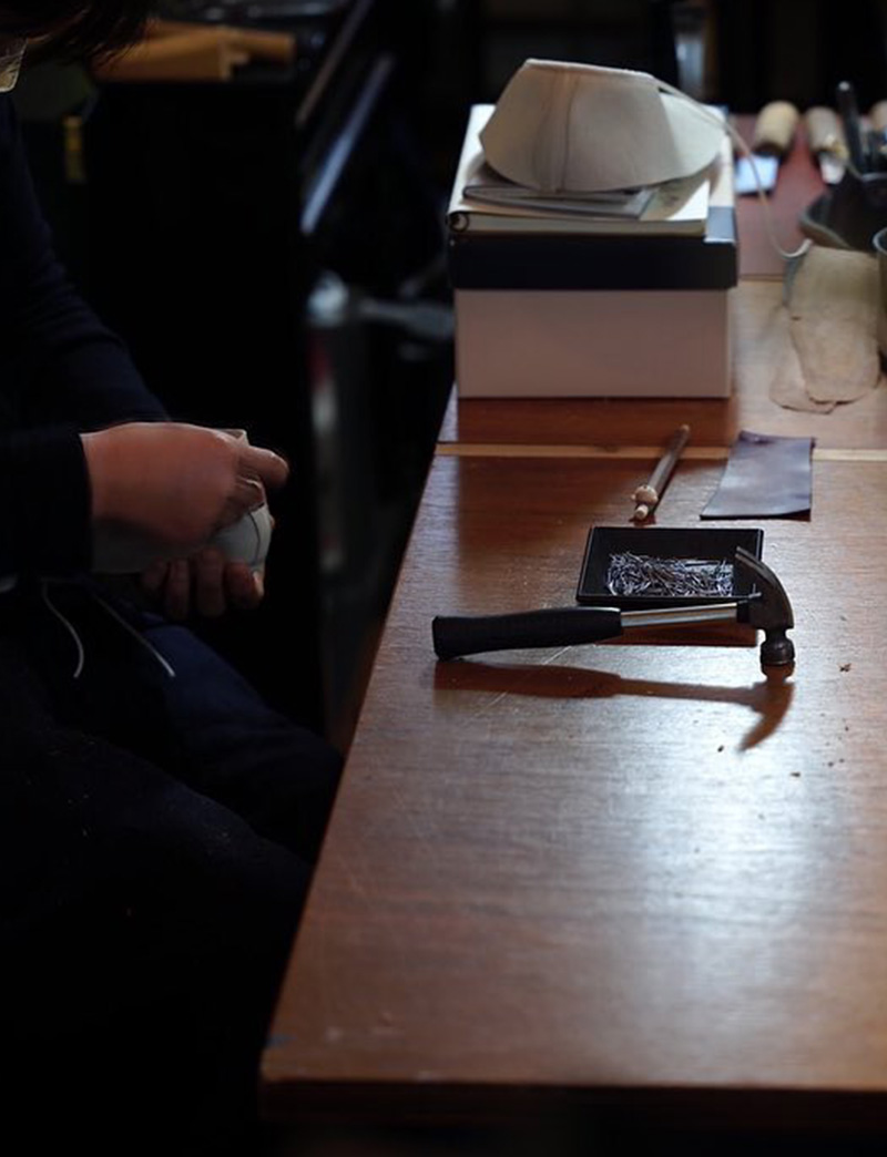 せっかく長い時間をかけてつくり上げる一足ですので、既製の木型ではなく自分の足に合わせた木型で靴づくりをスタートしてもらっています。